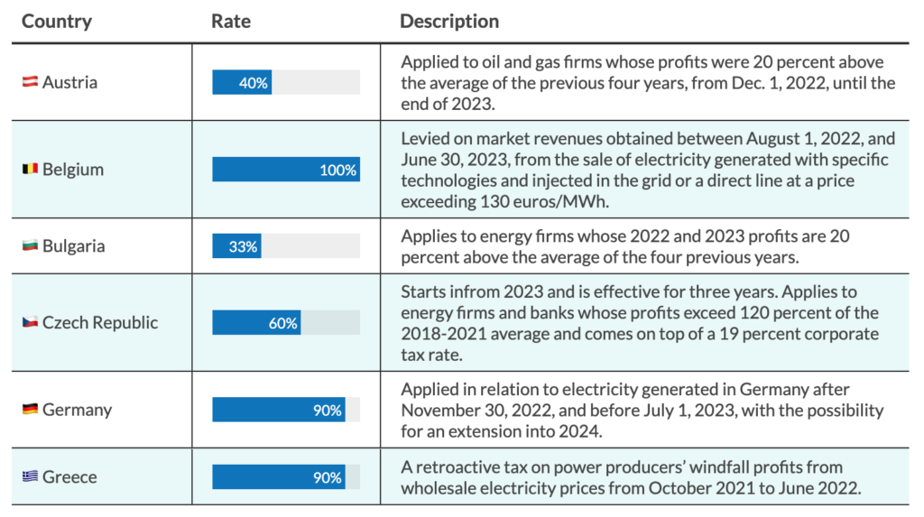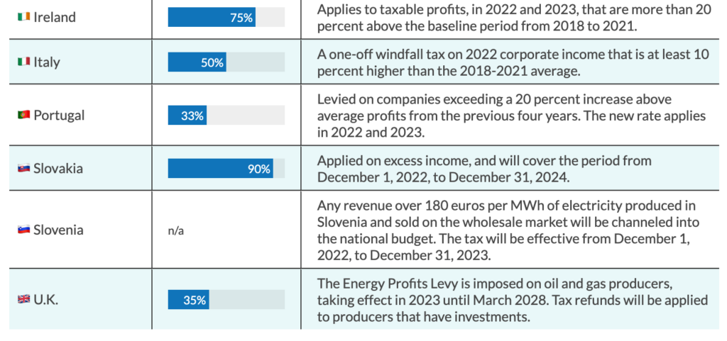New windfall taxes in Europe