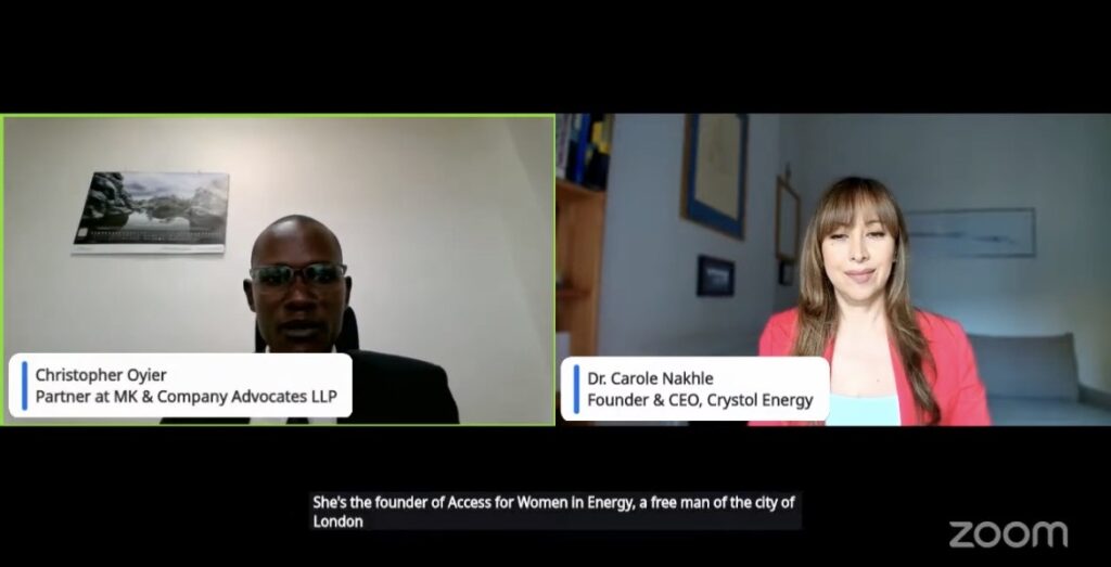 Dr Carole Nakhle, CEO of Crystol Energy, joined a high level webinar hosted by the East Africa Law Society, in partnership with Nalule Energy &