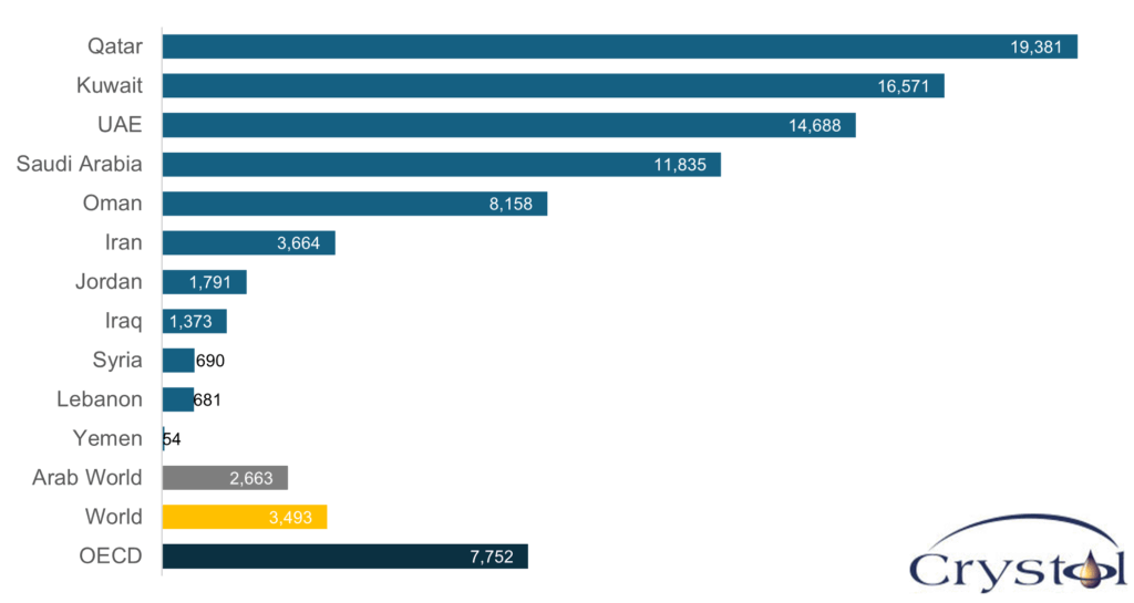 Another factor that sets the Middle East apart is the deep heterogeneity of electricity access and consumption. The region is often viewed as a single energy entity; in reality, countries such as Kuwait, the UAE and Saudi Arabia rank among the world’s highest consumers per capita, owing to energy-intensive industries, extreme cooling needs and high standards of living. In contrast, nations like Lebanon, Syria and Yemen have some of the lowest levels of electricity consumption worldwide, reflecting limited access, unreliable infrastructure and prolonged economic and political crises. These wide disparities in per capita electricity consumption mean that while some countries face high demand pressures and economic trade-offs, others struggle with limited access and infrastructure challenges.